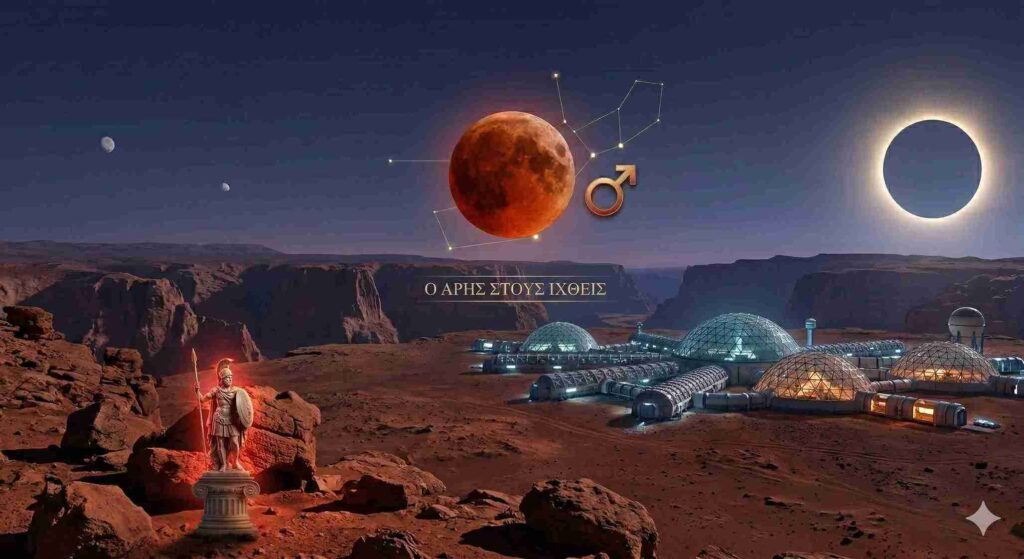 Ο Άρης στους Ιχθύες δεν είναι πολεμιστής με πανοπλία — είναι πολεμιστής της καρδιάς.
