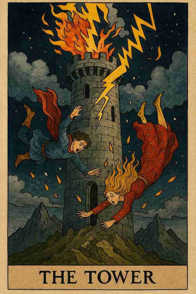 Ανάλυση: Η μέρα μπορεί να φέρει αιφνιδιαστικές αλλαγές ή αποκαλύψεις που γκρεμίζουν πρότερες δομές. Είναι δύσκολη, αλλά το δώρο είναι το ξεκαθάρισμα — με σωστή διαχείριση μπορείς να ξαναχτίσεις πάνω σε πιο στέρεες βάσεις. Μείνε συγκεντρωμένος/η στην αποκατάσταση.